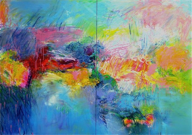 Abstract art can be a difficult thing for people. I certainly have a hard time selling it to my interior design clients...people feel better with something they recognize. But I have noticed that the more one is literate in art, the more readily one appreciates abstraction. I myself have not always appreciated abstract art, but when I was much younger, the more I understood art, art history, and what the artists themselves were thinking or trying to convey, the more I understood abstract pieces. And the work of Gérard Stricher is quite pleasing to my eye. They are light and lively, yet substantial. He has a marvelous sense of composition and placement, and I really love his highly saturated color palette! I would love to show these to an interior design client...